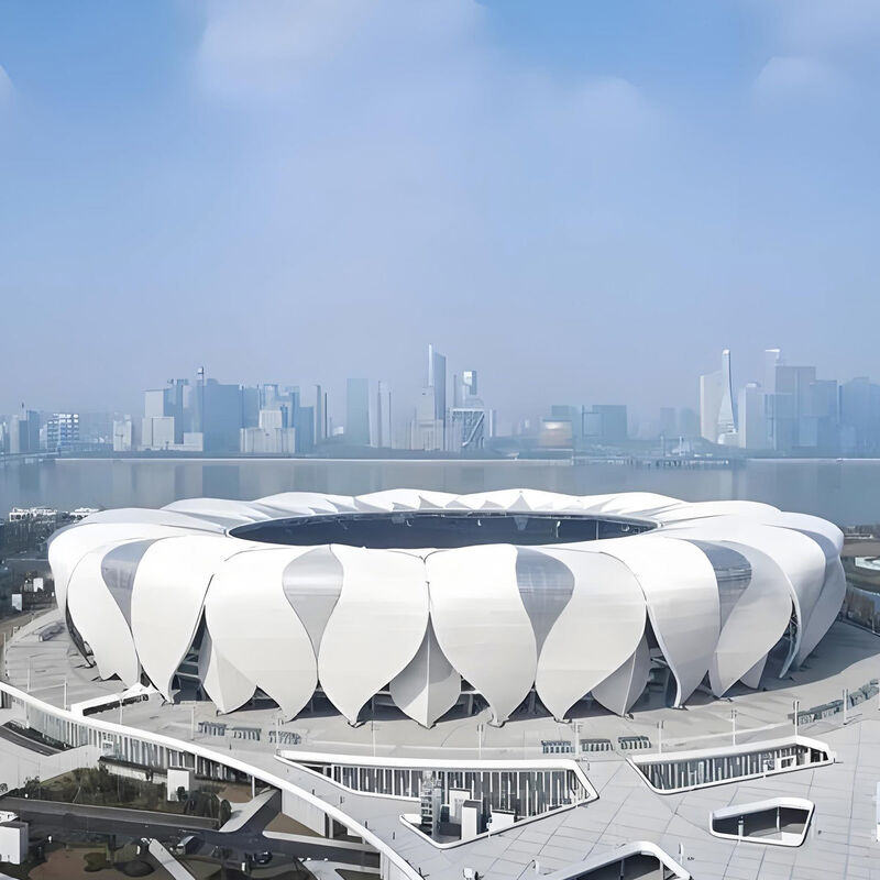 Esta membrana de construcción PVDF tiene espesores estándar de 1,0 mm a 1,03 mm, anchos de 1000 mm a 1800 mm y longitudes de 50 m a 100 m. Se ofrecen colores personalizables.Cuenta con excelente resistencia a los rayos UV, autolimpieza, alta resistencia al fuego y aislamiento térmico., y es viable para la pared del techo del estadio y la estructura de membrana de tensión.