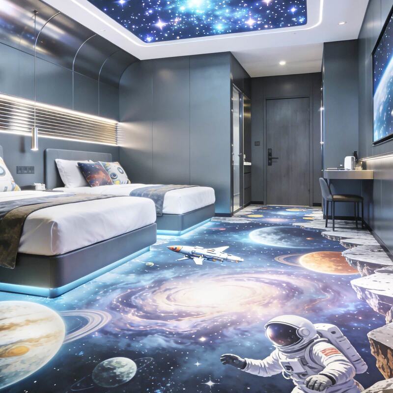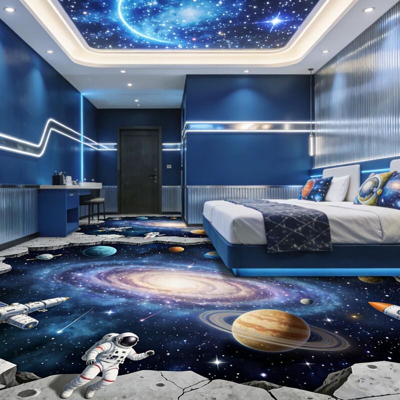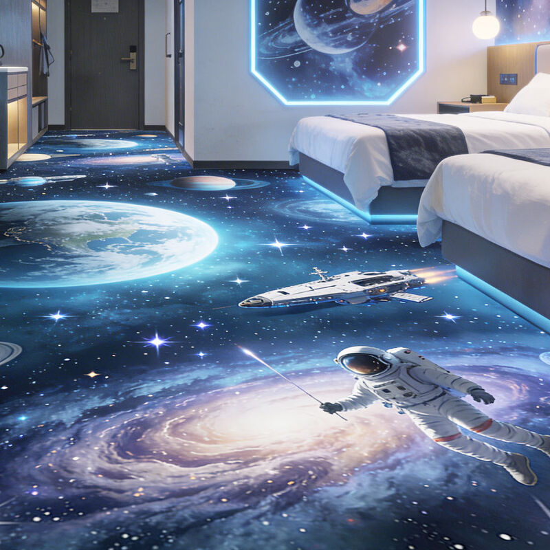Las pegatinas de piso 3D personalizables apoyan sus propios diseños con impresión de alta definición; con una estructura de múltiples capas para una comodidad suave, resistencia al desgaste y idoneidad para hoteles, centros comerciales,y varios espacios comerciales.
